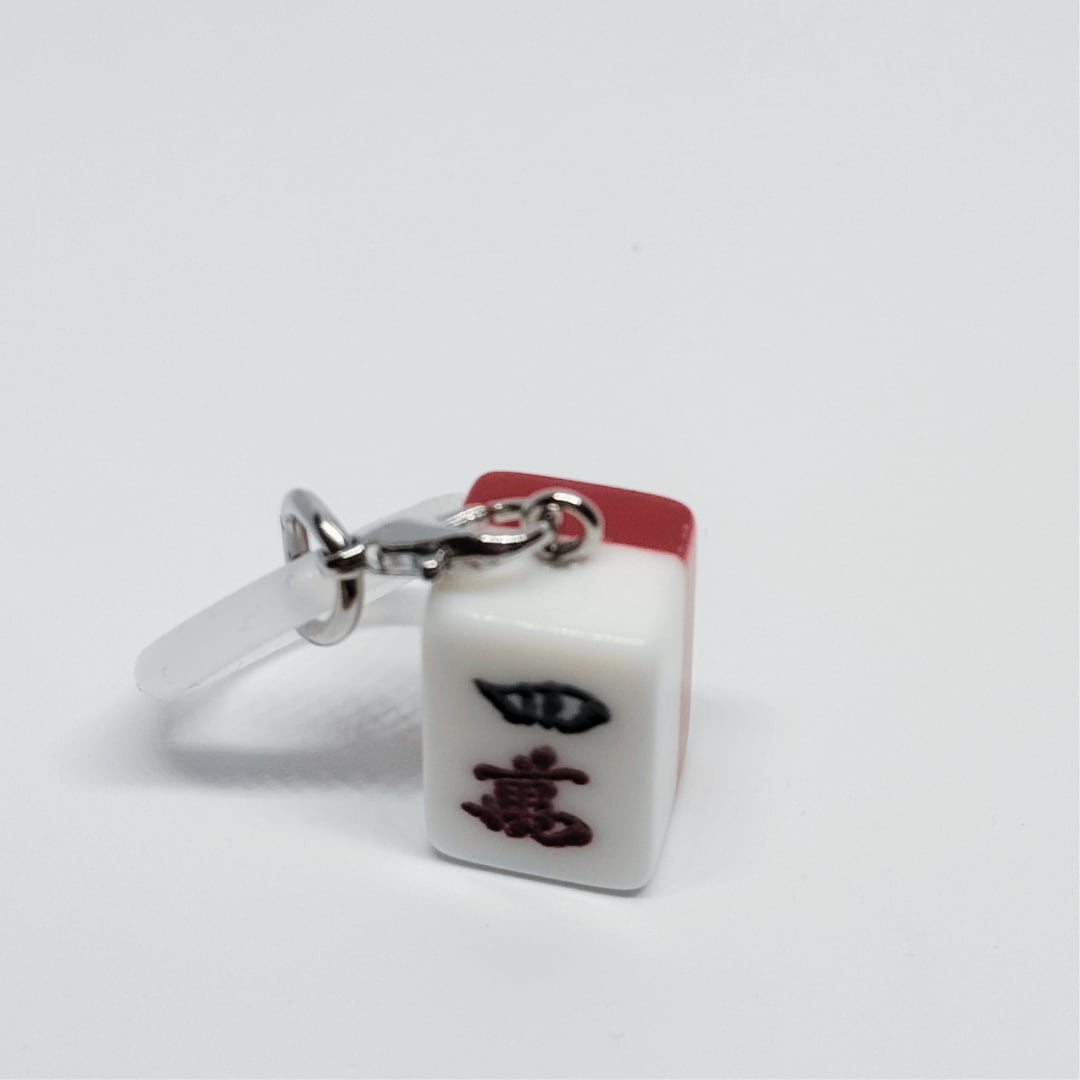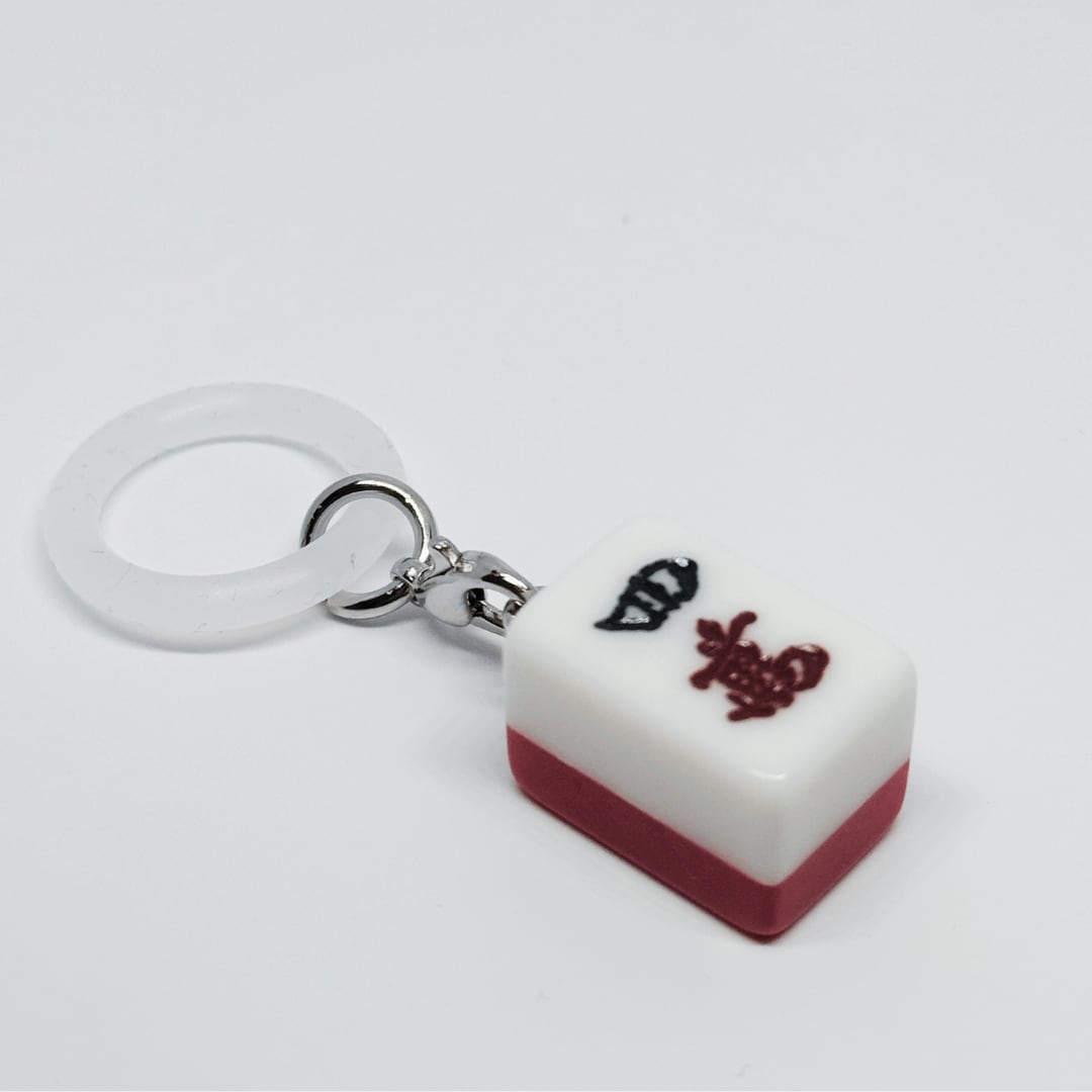 ミニ麻雀牌を使用した、めじるしチャームです。