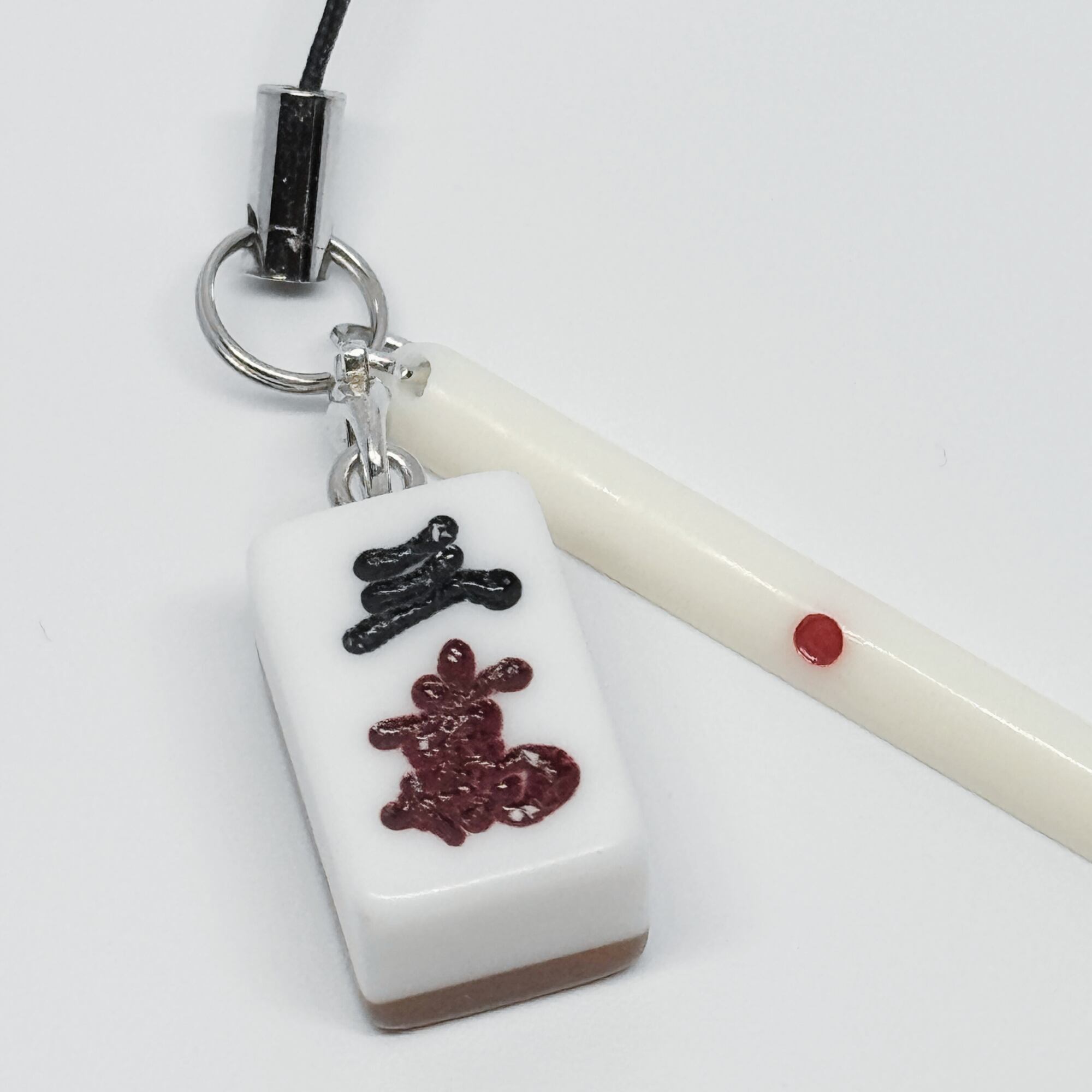 ミニ麻雀牌とミニ点棒を使用した、ストラップです。