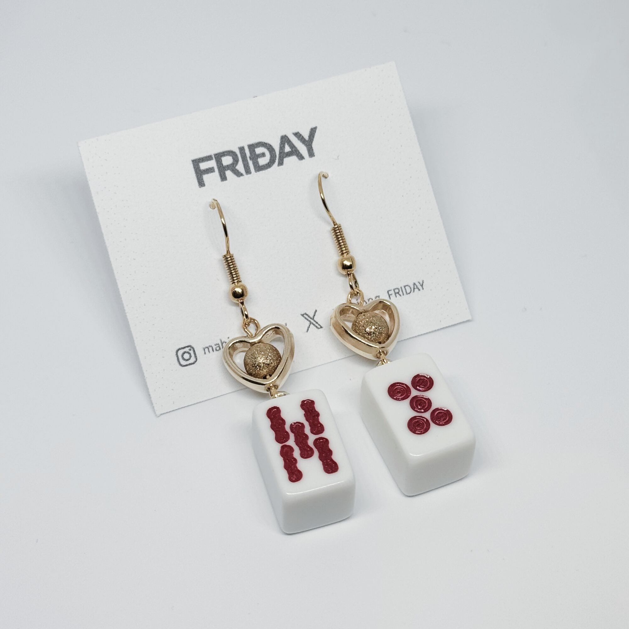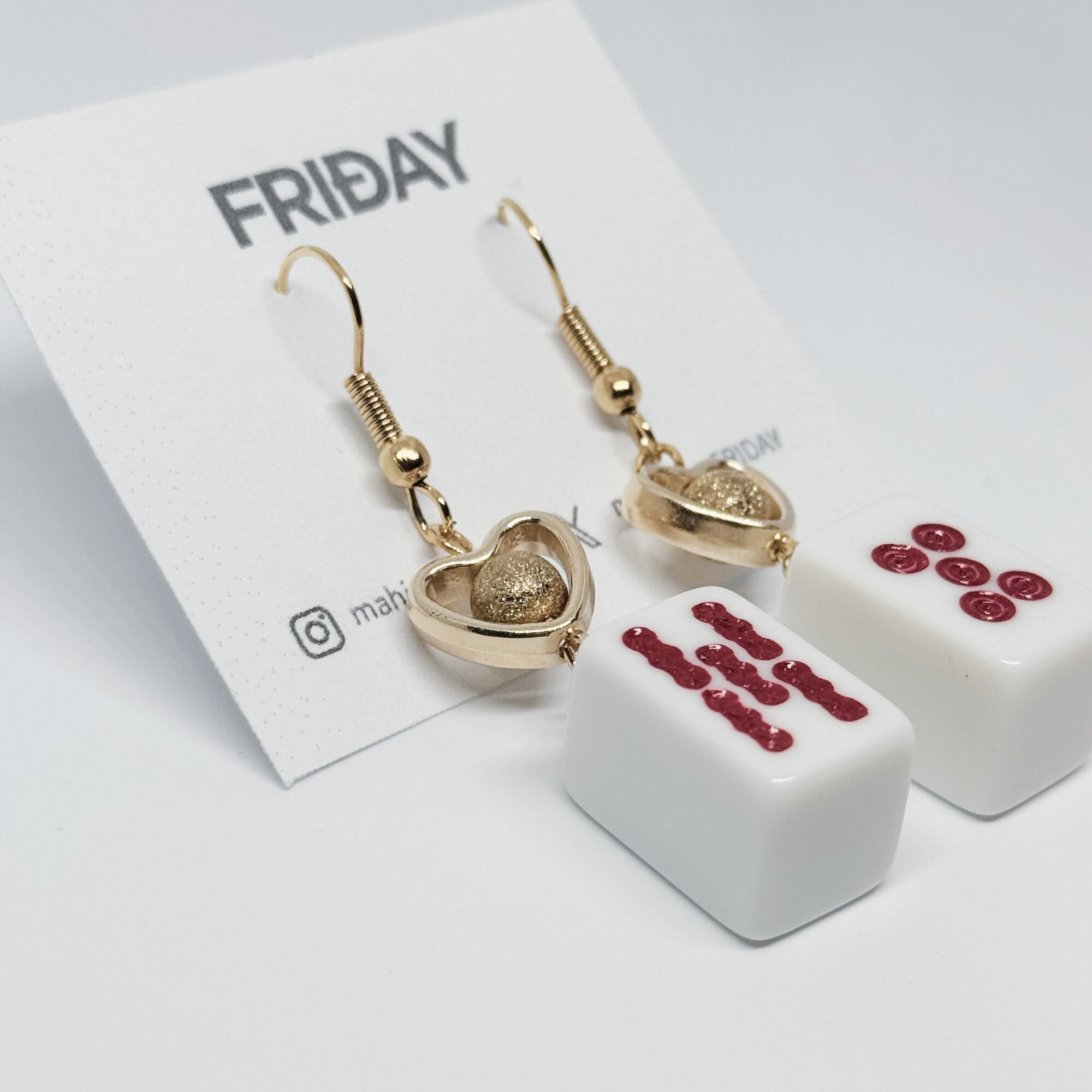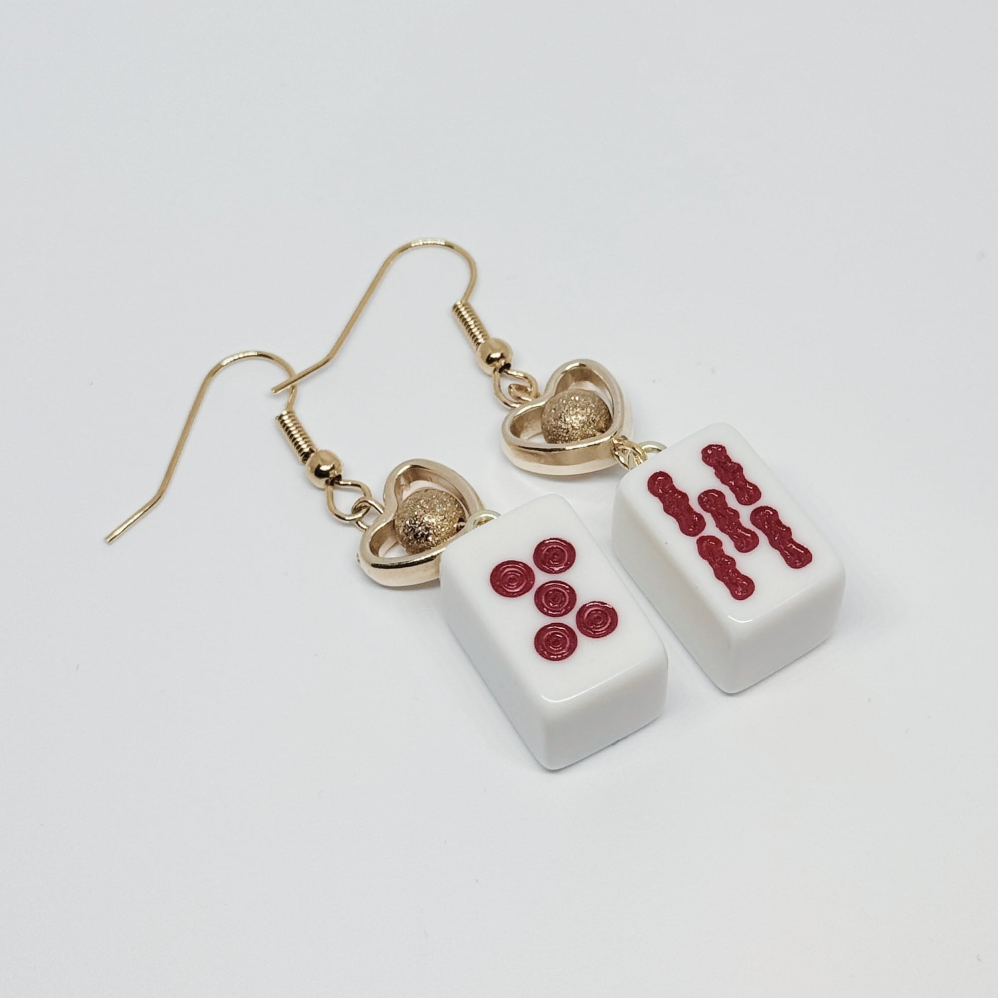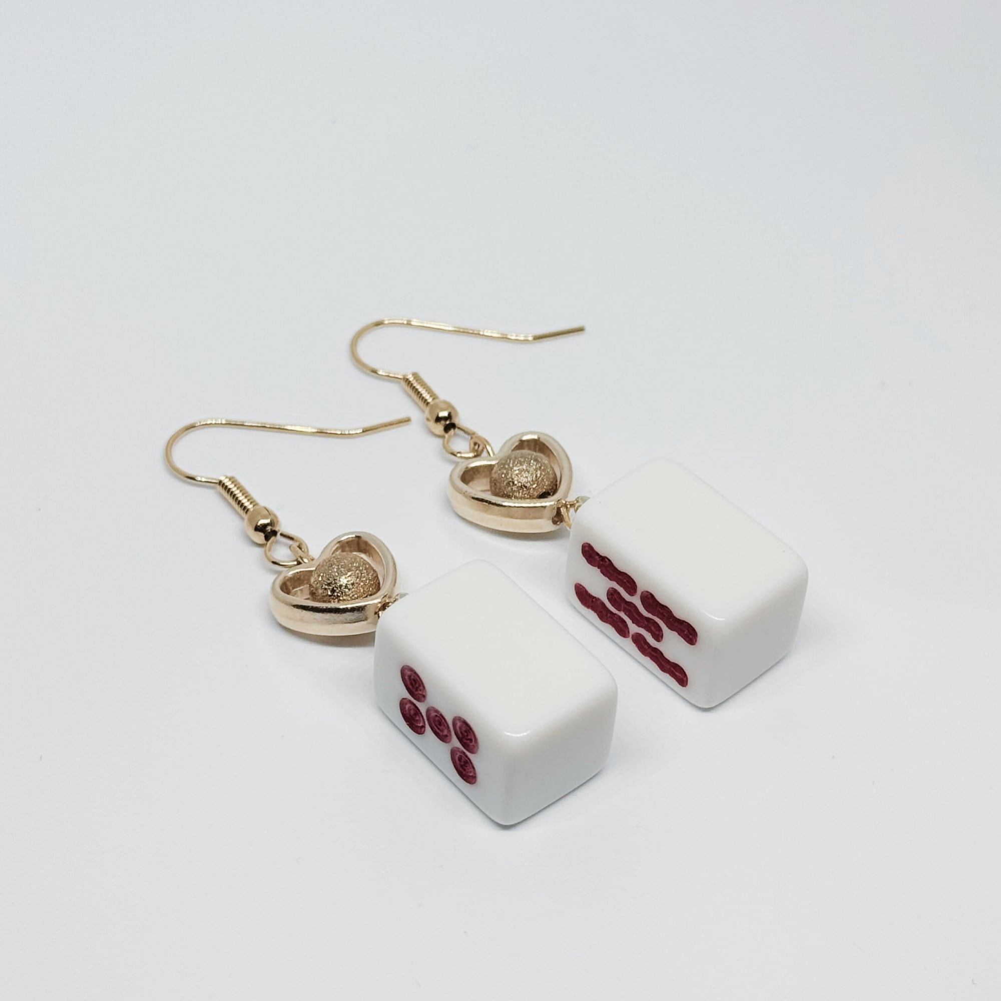 #023 【ミニ麻雀牌】ミニ麻雀牌ピアス メタリックハート ゴールド 背面白