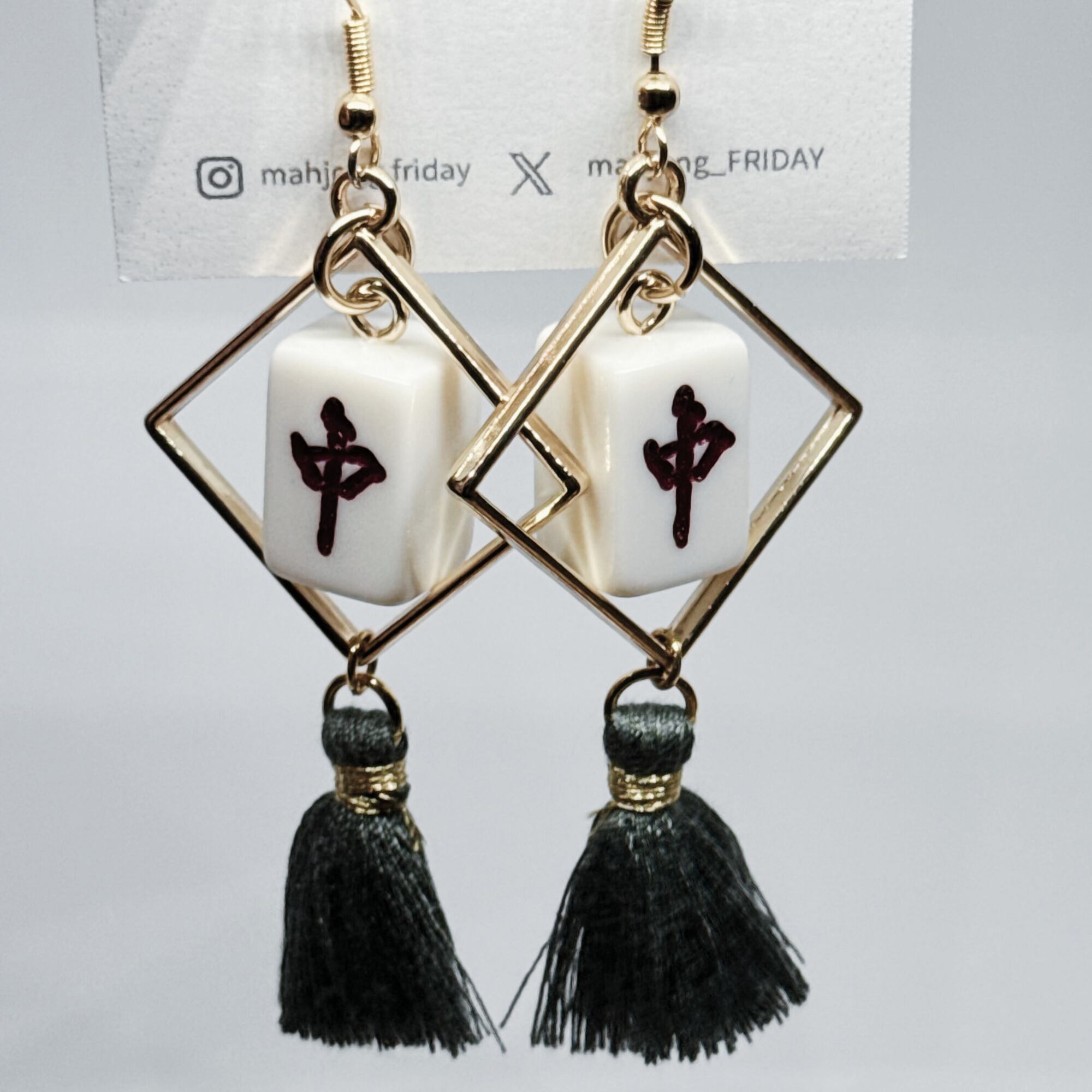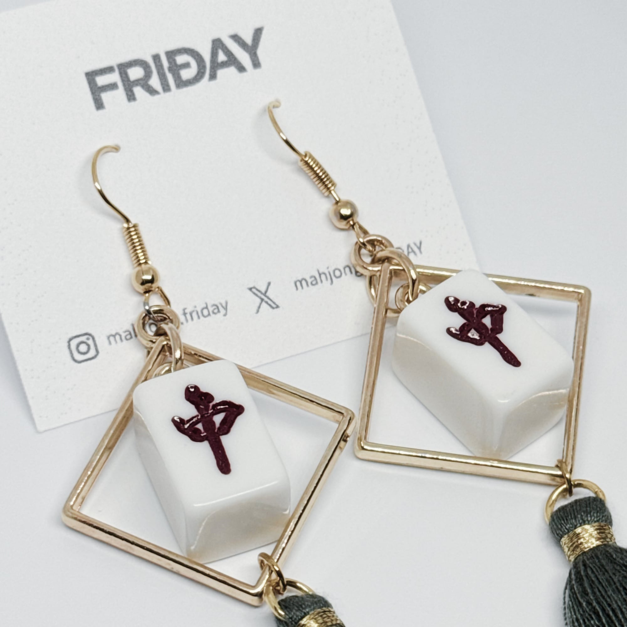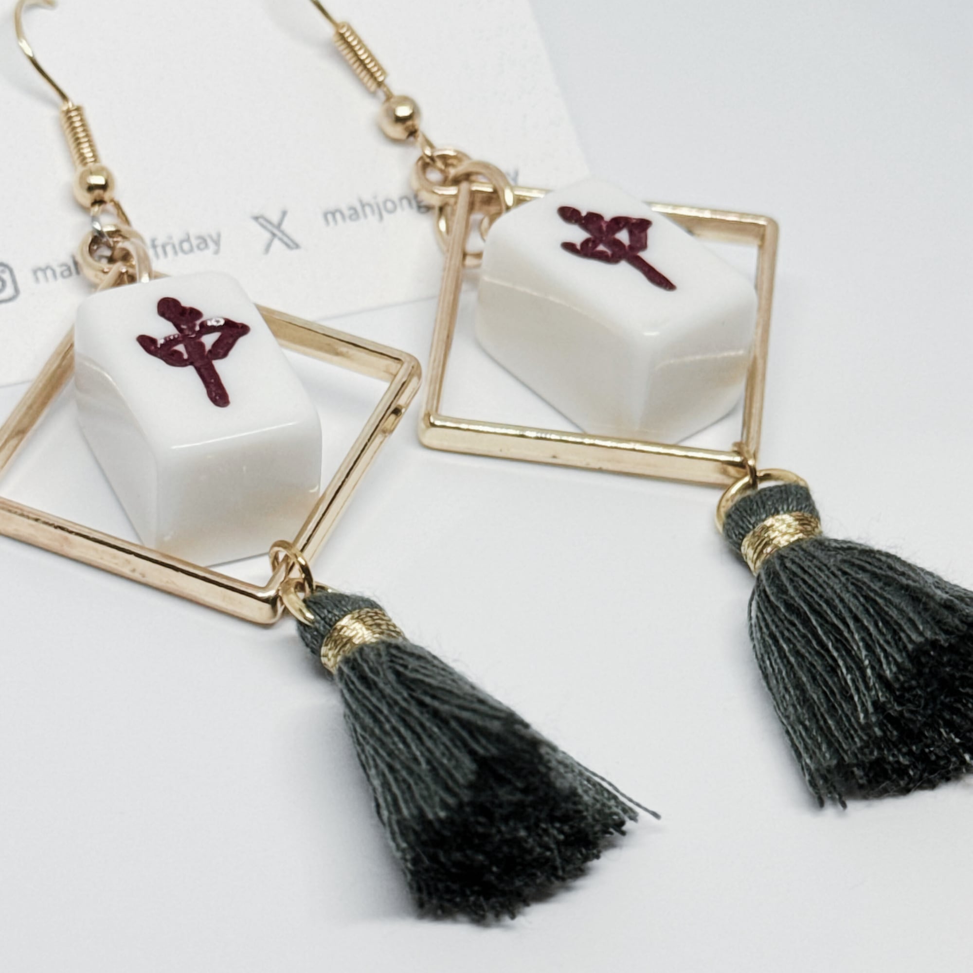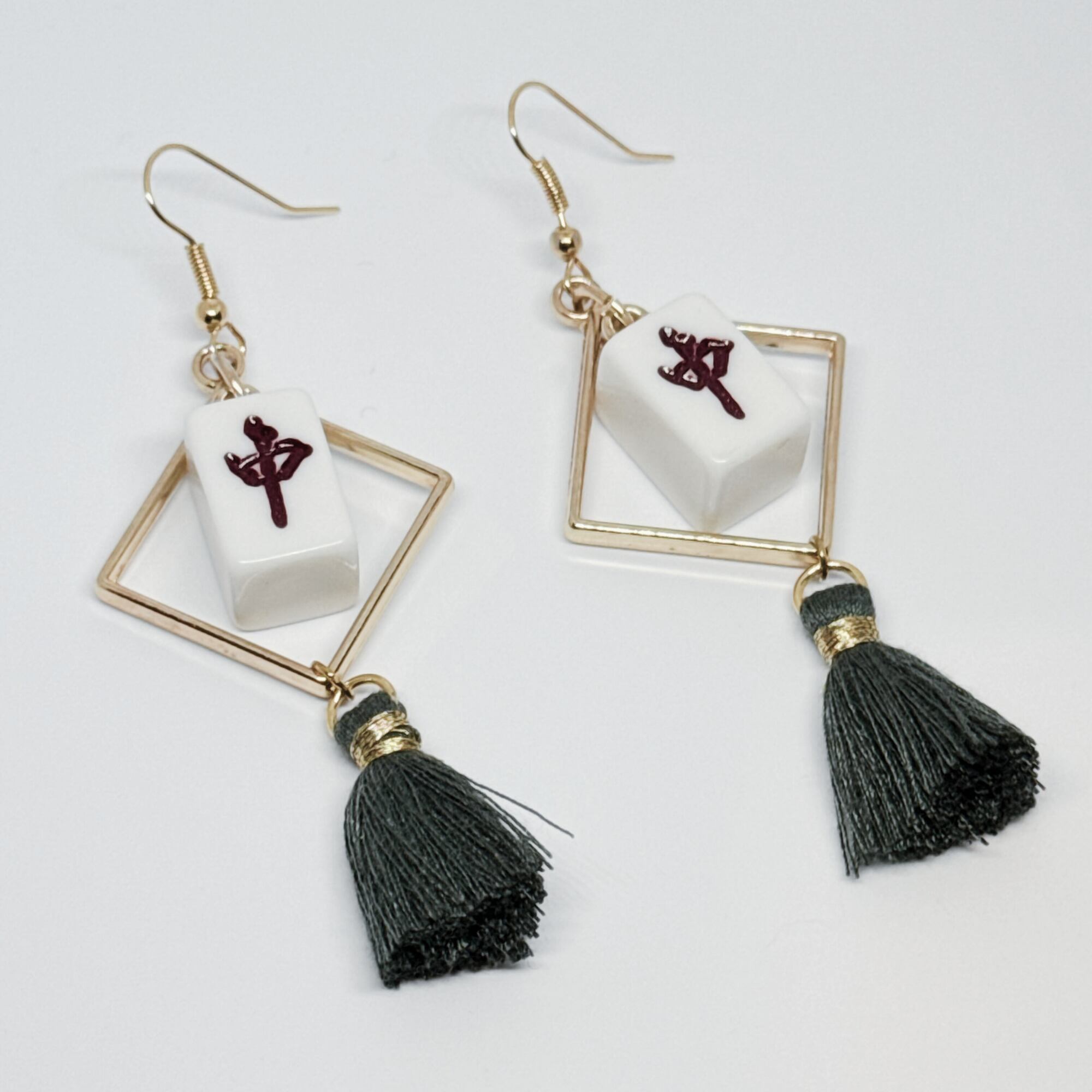#025【ミニ麻雀牌】ミニ麻雀牌ピアス クスエア タッセル付き 背面白